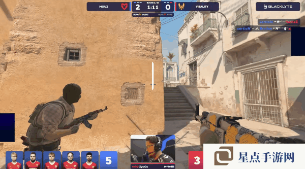 进攻方开局的Vitality选择B1夹击中路,而MOUZ在B1成功设伏化解了对手的默认成功拿下手枪局。来到长枪局,双方在小道短兵相接,ZywOo凭借超高数值豪取三杀帮助队伍扳回一分。Vitality找到了小道的进攻节奏后持续在中路施压,又依靠ropz的单点摸排打崩对手经济,比分来到4-2。接下来双方各有胜负,MOUZ依靠动态防守抓住了不少机会持续追分,不过最终Vitality还是以微弱优势在上半场领先,比分为7-5。