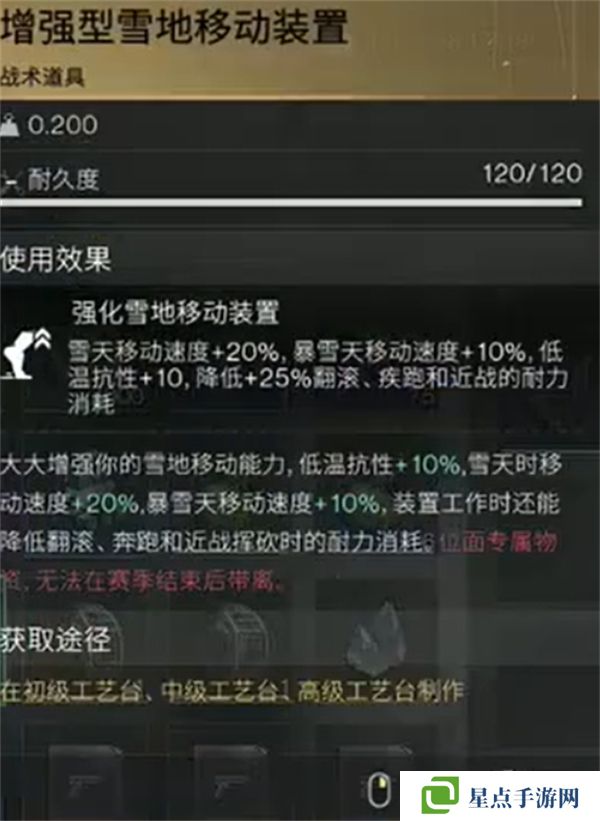 3、取出雪地移动装置: 从储物箱中将雪地移动装置取出,此时装置的buff效果将会持续,并且不会再消耗耐久。