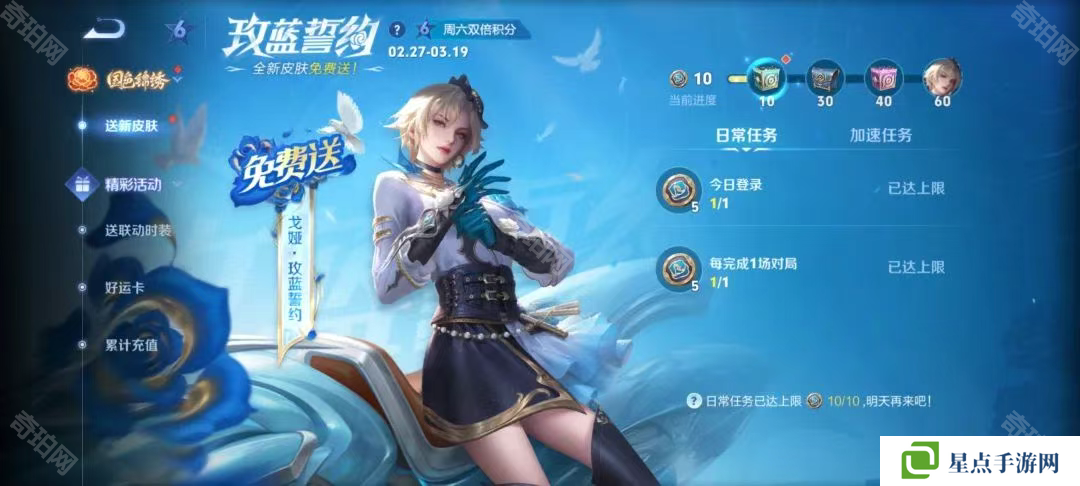 这个活动虽然简单,但每日有获取上限,且上限逐日增加10积分。也就是:第一天上限是10积分,第二天上限是20积分,第三天上限是30积分,所以活动最快3天就可以领戈娅新皮肤。