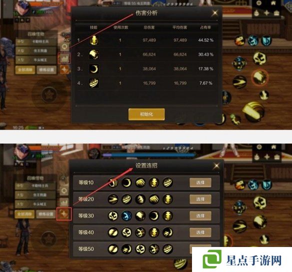 此外,召唤怪物有三个功能按钮包括【重置技能CD】,方便施放技能后重置冷却时间;【查看伤害分析】,帮助玩家在连招后分析技能使用次数、总伤害、平均伤害及伤害占比;【设置连招】,可以设置连招顺序。
