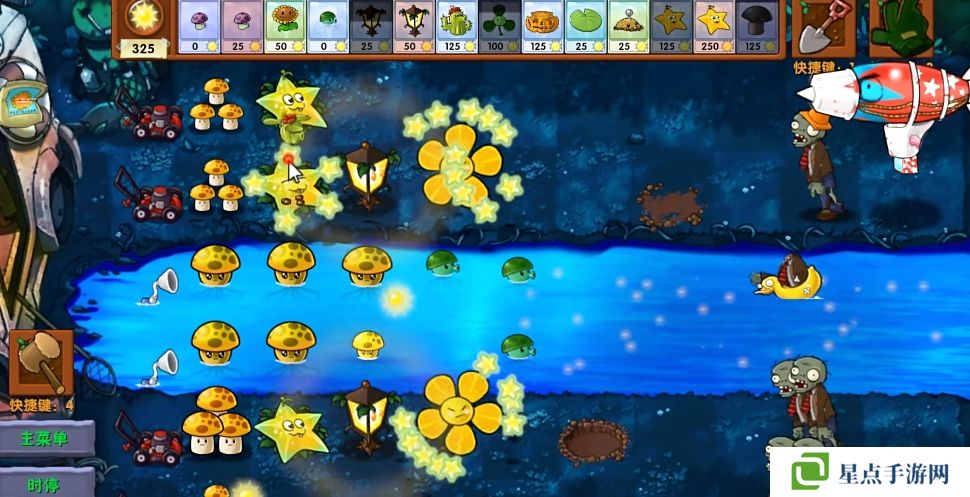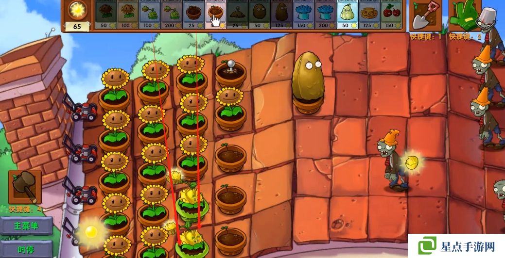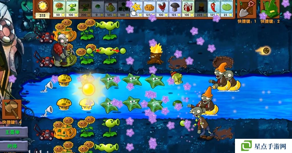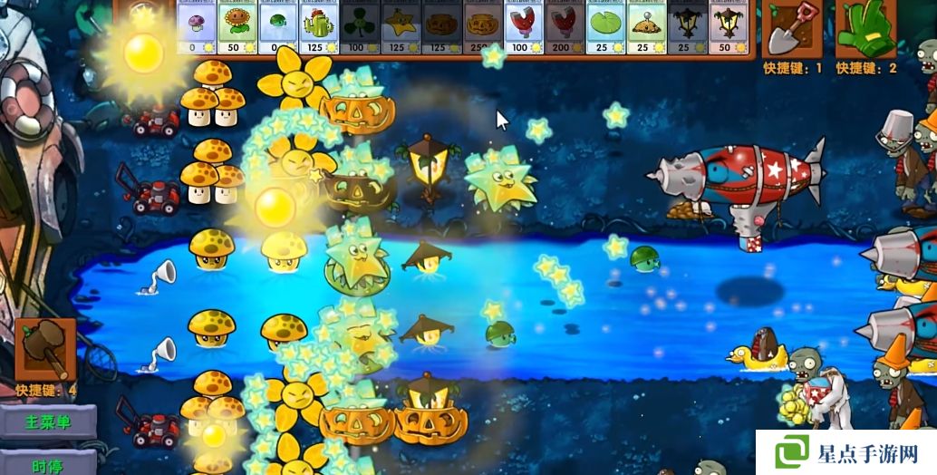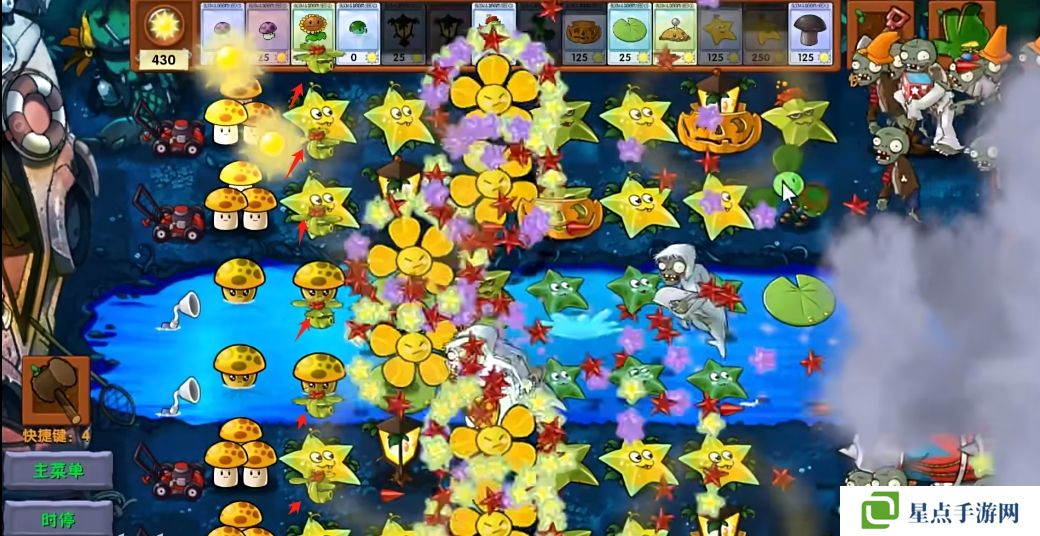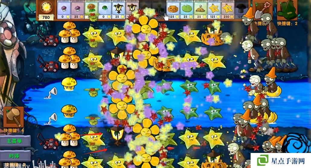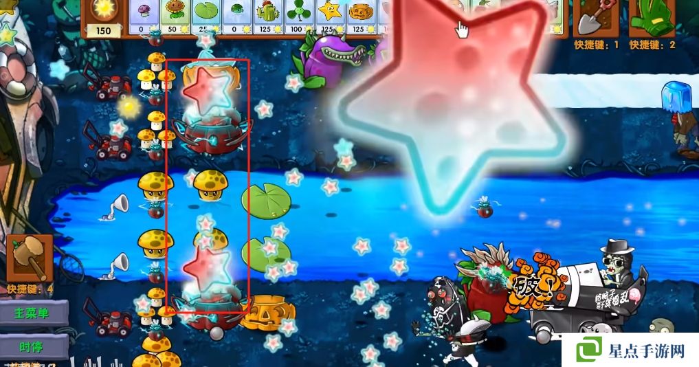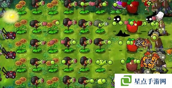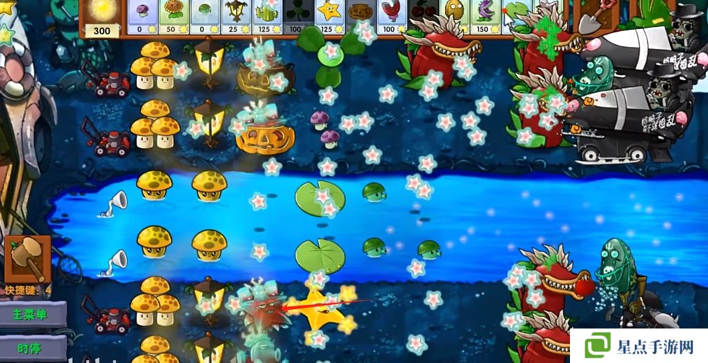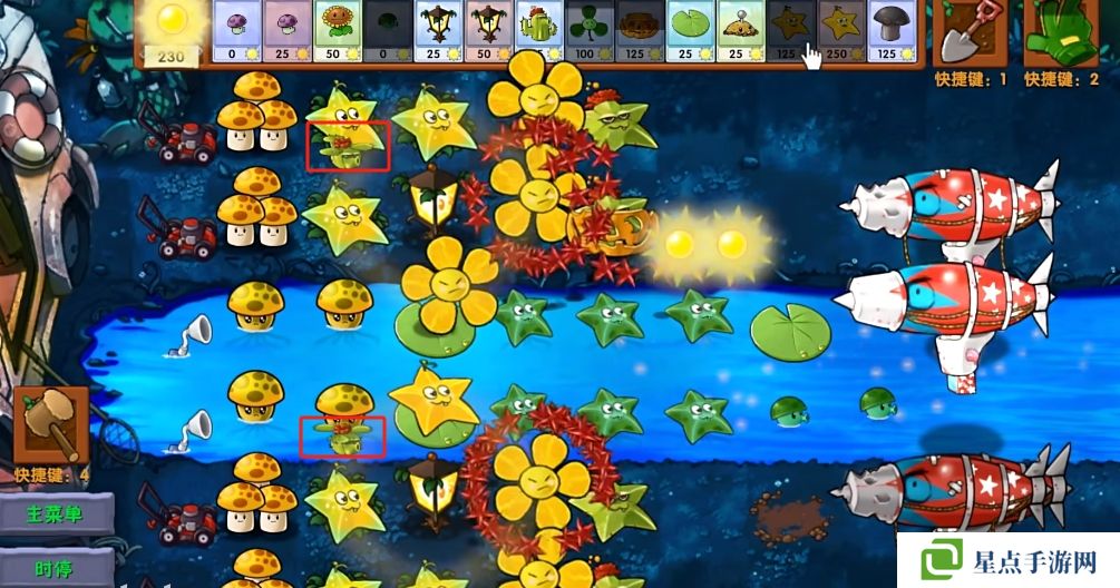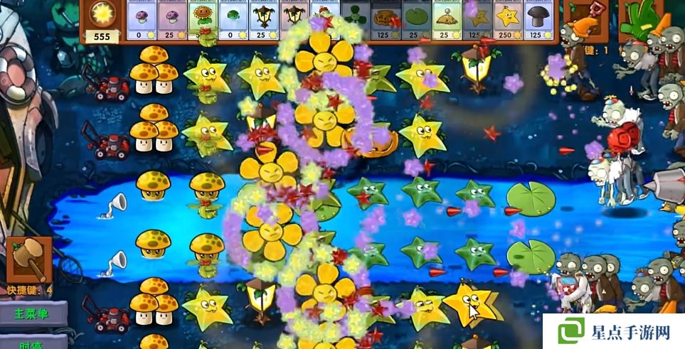 5、海星射手的星星是四散攻击的,有了仙人掌杨桃可以帮助星星回来向僵尸方向进行攻击。