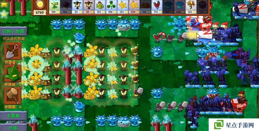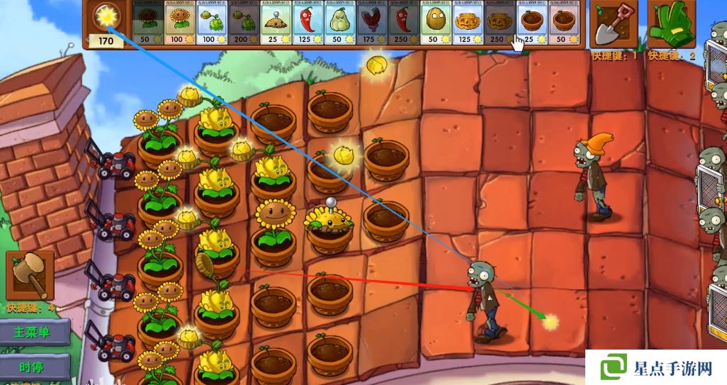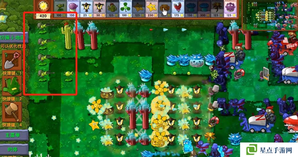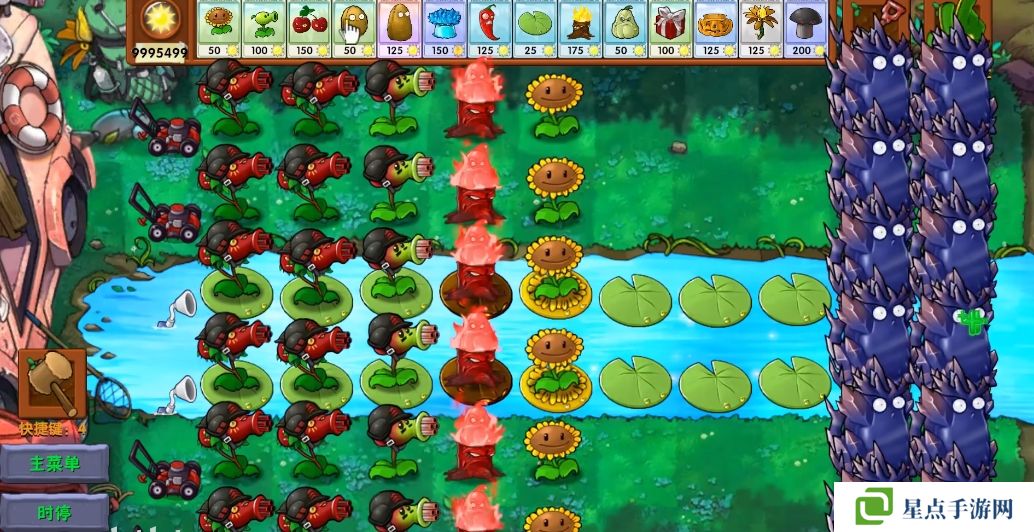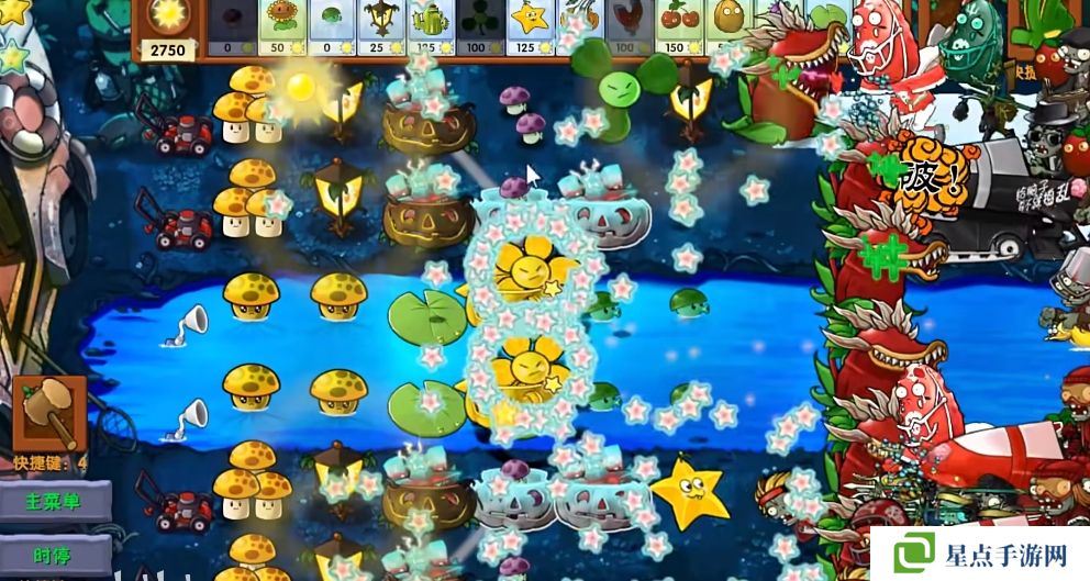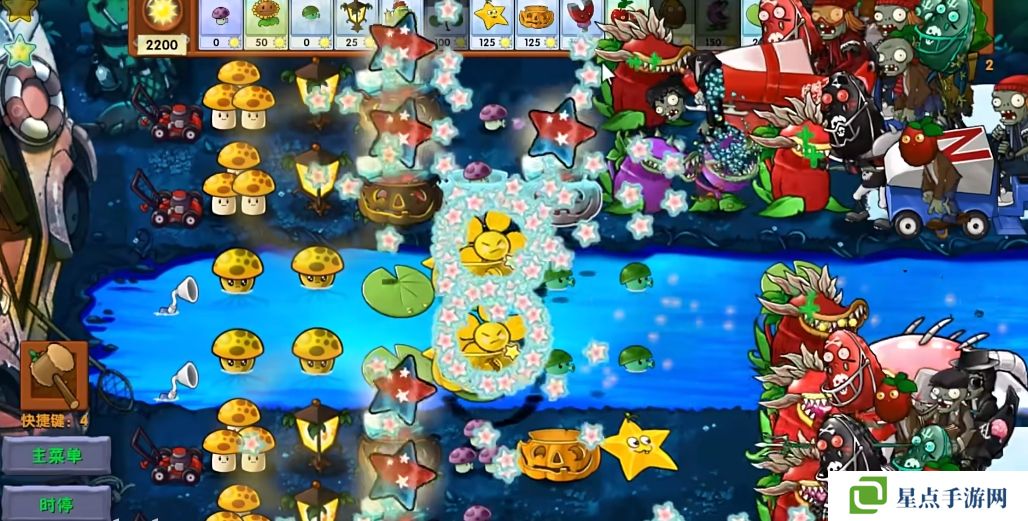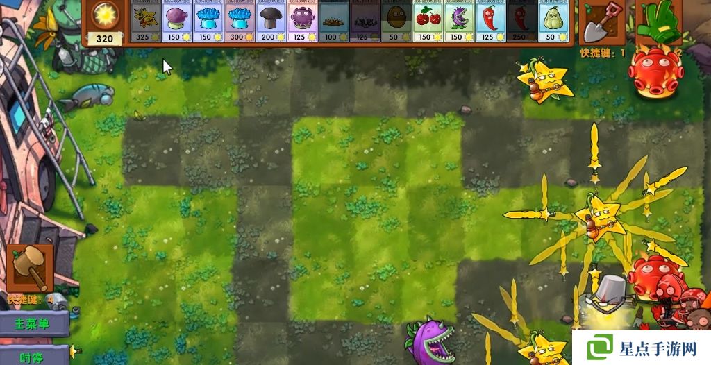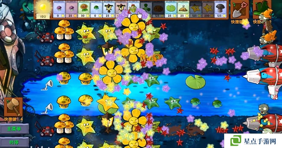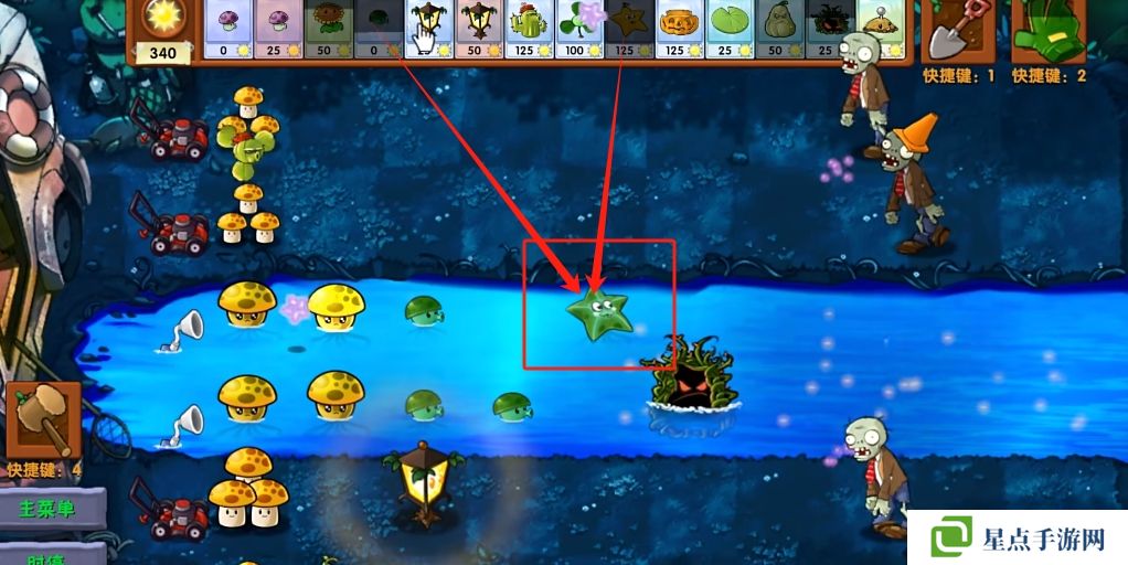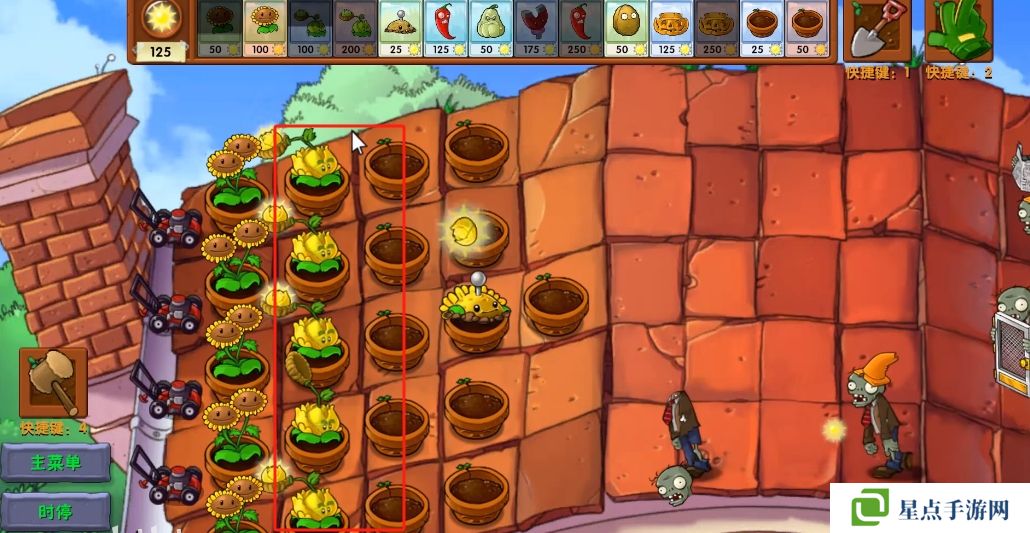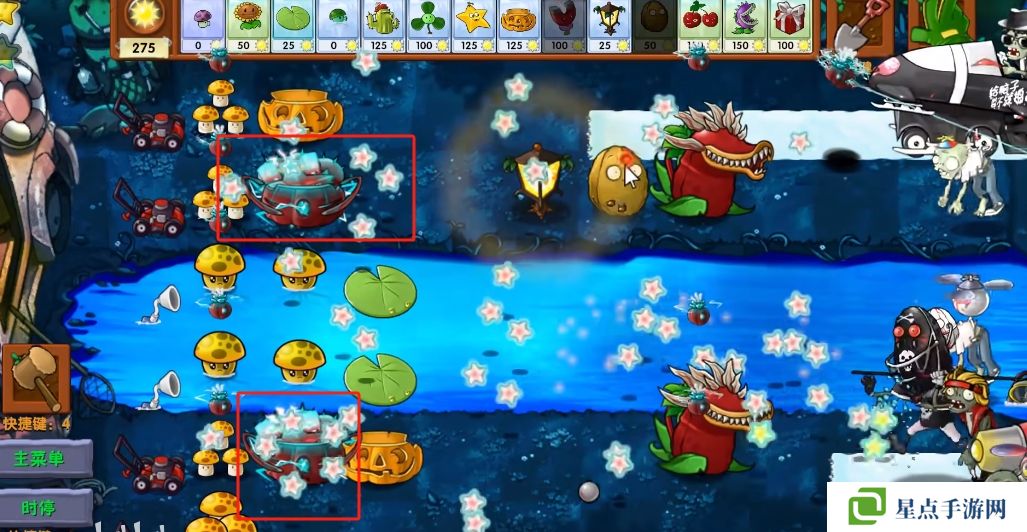 5、海星射手的星星是四散攻击的,有了仙人掌杨桃可以帮助星星回来向僵尸方向进行攻击。