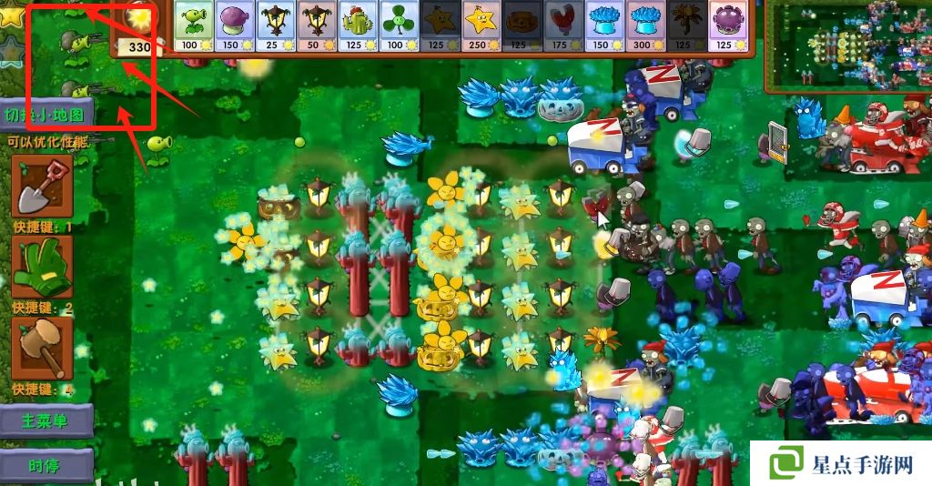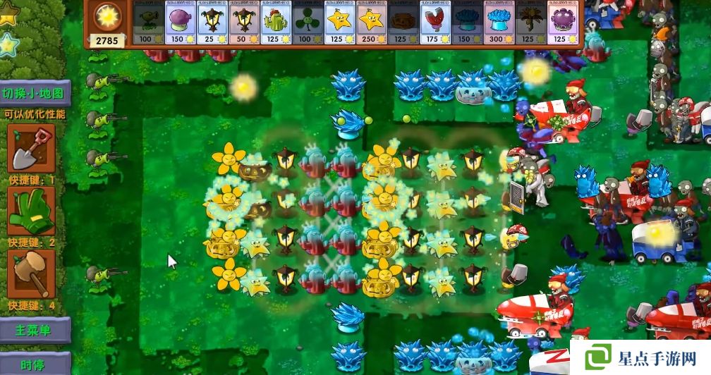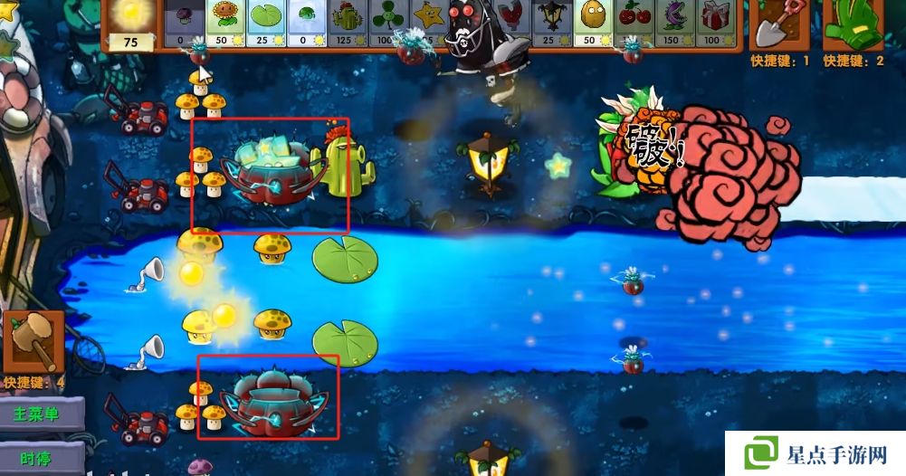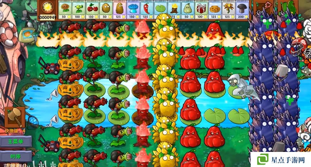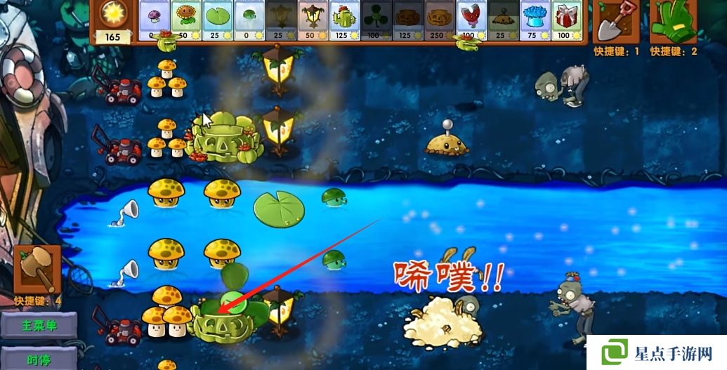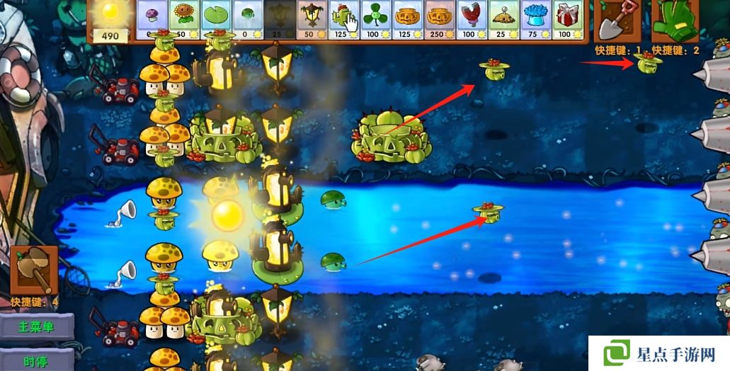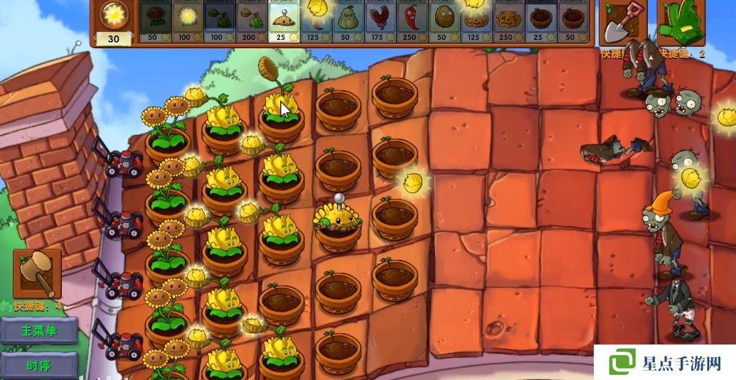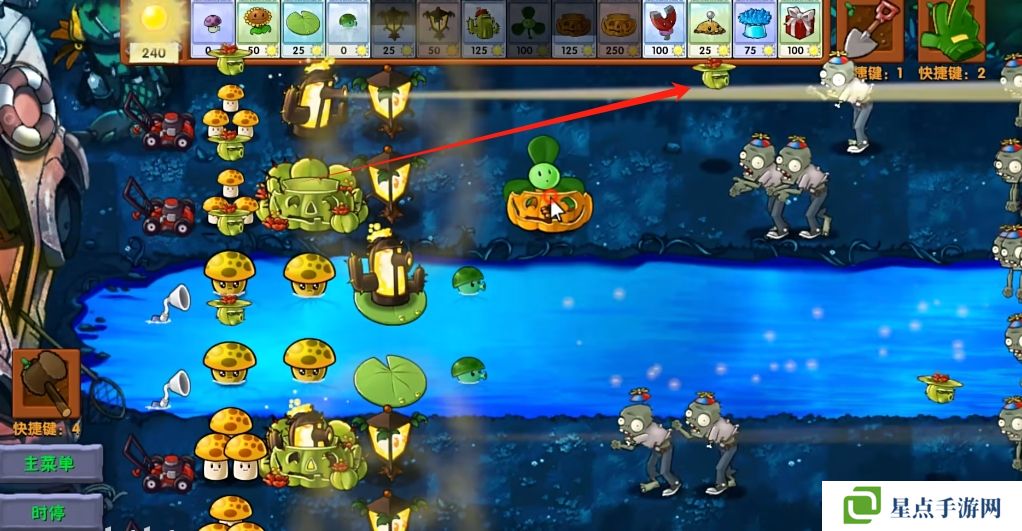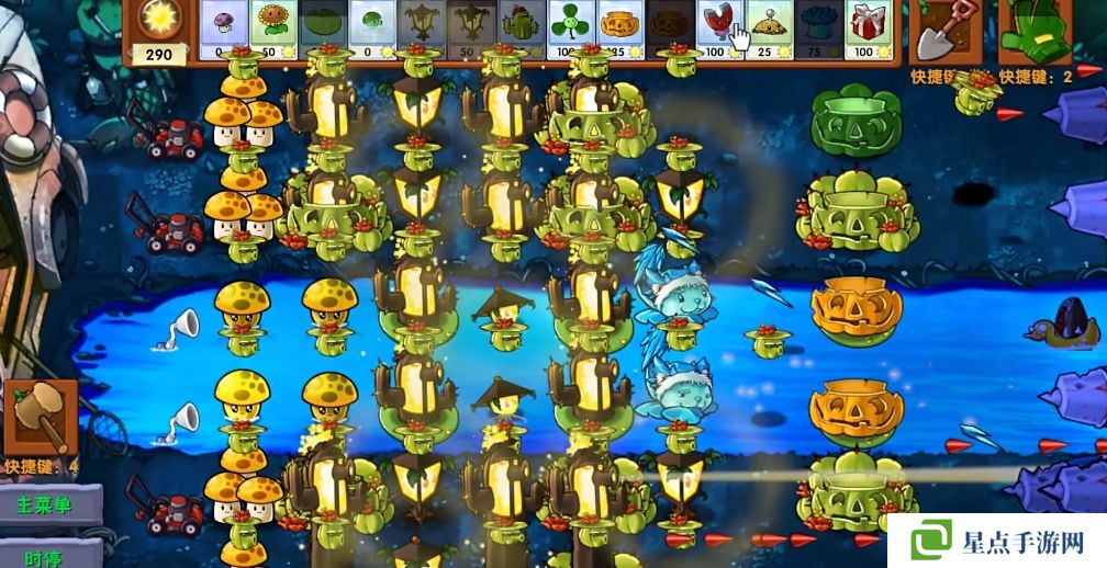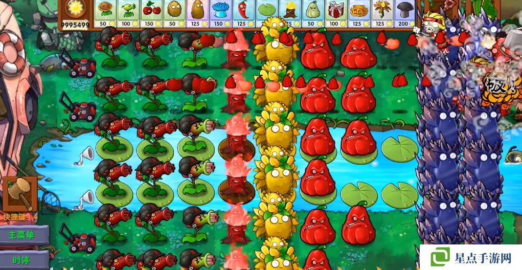 5、海星射手的星星是四散攻击的,有了仙人掌杨桃可以帮助星星回来向僵尸方向进行攻击。