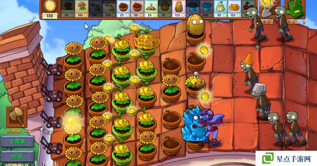 经典塔防模式飞行僵尸无视路线前进,也不会啃咬在路线以外的植物