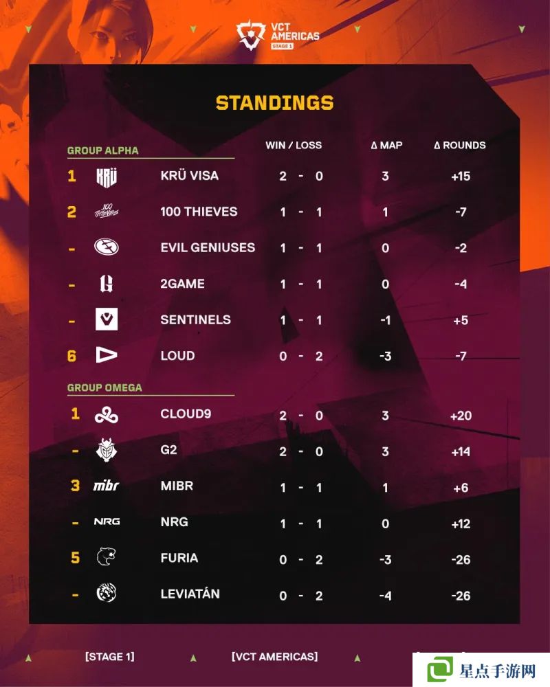 VCT美洲本周赛况:G2、C9、KRU两连胜,LEV、LOUD等两连败