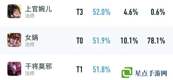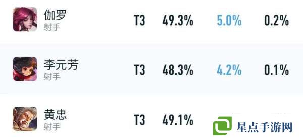 以上则是伽罗,李元芳和黄忠目前的巅峰赛数据,虽然胜率都有0.5%左右的提升,但出场率依旧低迷,还是排在垫底的位置。