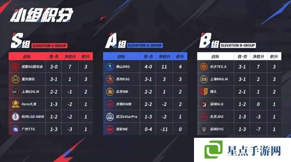 济南RW侠在上周又一次开启了他们经典的“让二追三”剧本,在此前大场0-2陷入绝境后,上周连续两场在对手先拿赛点的情况下打满五局完成翻盘,拿到了一波两连胜,将自己的排名从A组第五提高到了第四,暂时脱离了A/B卡位赛的风险。但目前2胜2负却只有-2净胜分的战绩,想争A2去打S/A卡位赛还是比较困难的: