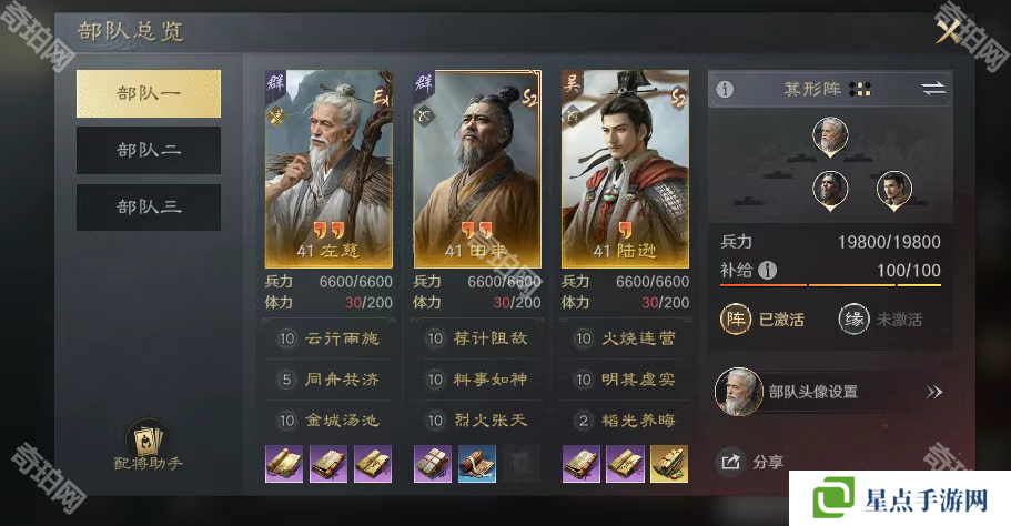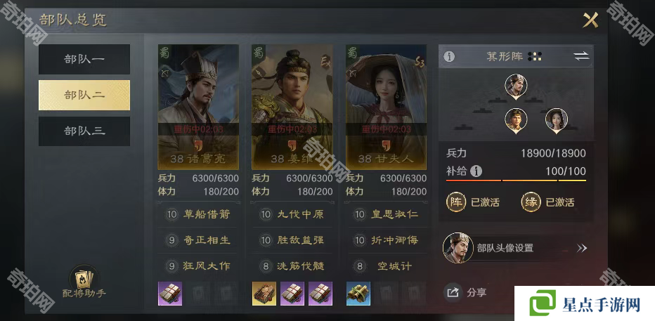 这两队开荒队平民最舒服的地方,就是战法互换!前期战法不够点满两队的,二队一般是三个武将主战法平均能到六级。