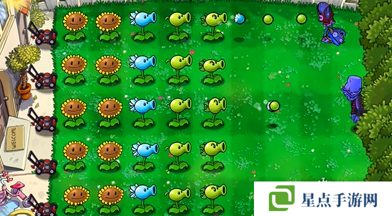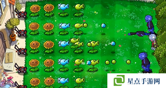 6、然后在寒冰射手的右侧种植一列豌豆射手。