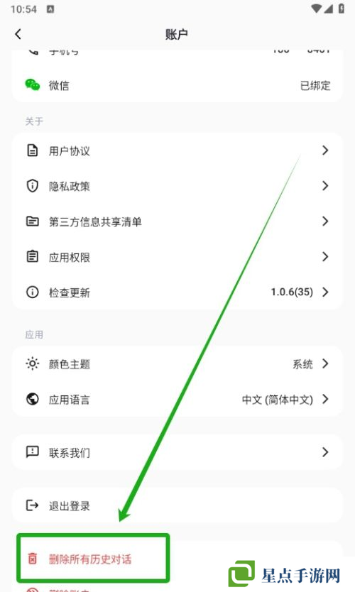 3、最后,选择【删除所有历史对话】选项以清除对话记录。